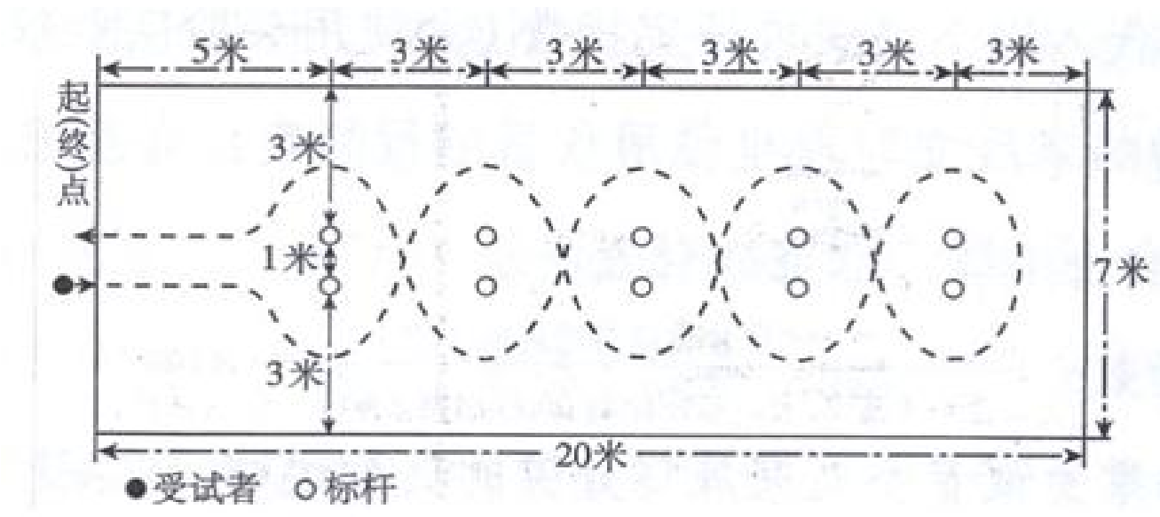 受试者两脚自然分开站立,两脚原地同时起跳,不得有垫步、助跑或连跳动作。受试者测试结束后,从测试区域的前方走出。丈量起跳线后缘至最近着地点后缘之间的垂直距离。每名考生可连续测试两次,取最好成绩。