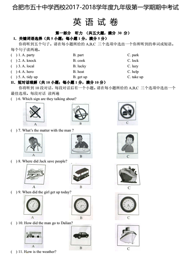 2017-2018学年上学期合肥五十中西校九年级期中考试英语试题