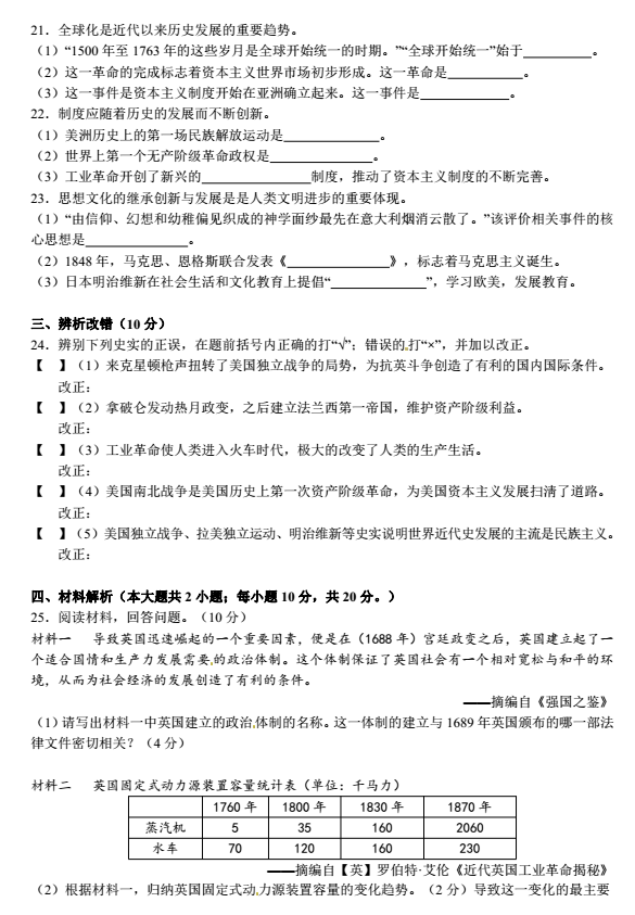 2017-2018学年上学期合肥五十中西校九年级期中考试历史试题(3)