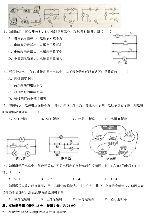 2017-2018学年上学期合肥五十中西校九年级期中考试物理试题(3)
