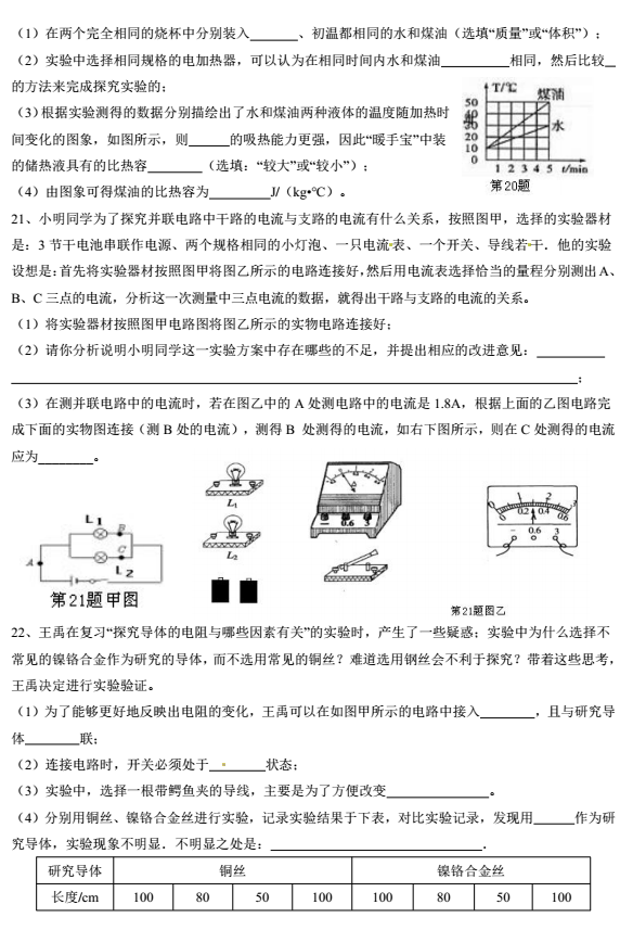 2017-2018学年上学期合肥五十中西校九年级期中考试物理试题(4)