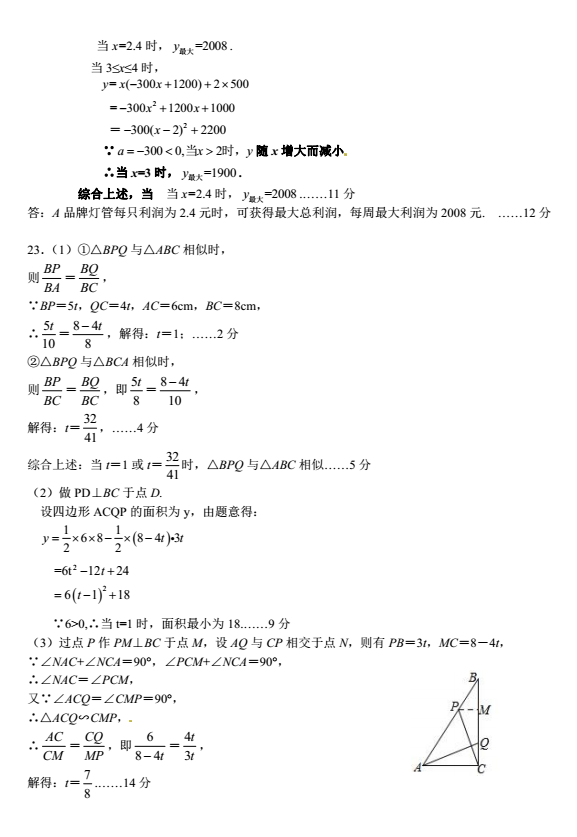 2017-2018学年上学期合肥五十中西校九年级期中考试数学答案(3)