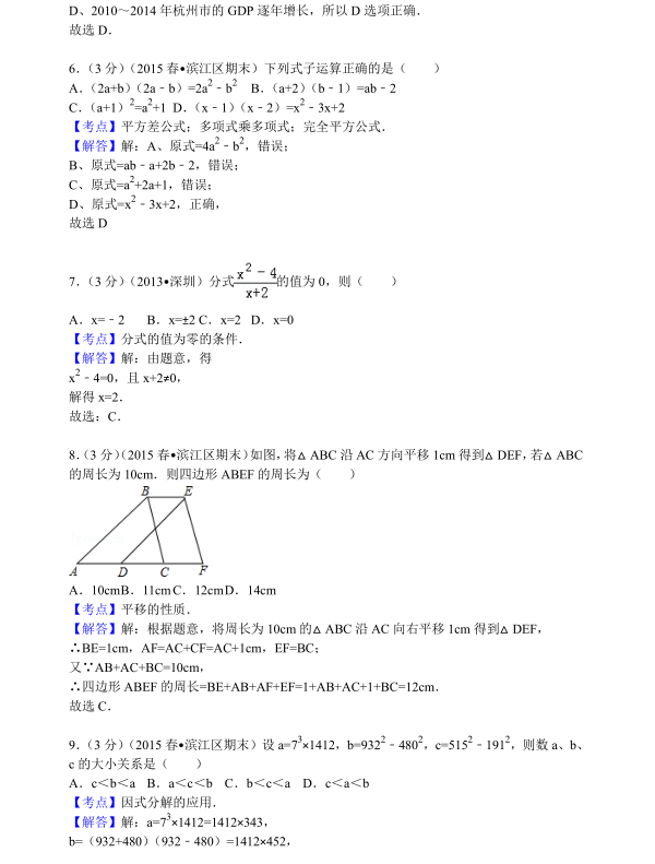 2014-2015学年滨江区初一下期末数学答案(3)