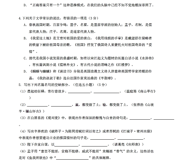 杭州下城区2015-2016学年初三上期末语文试题(2)
