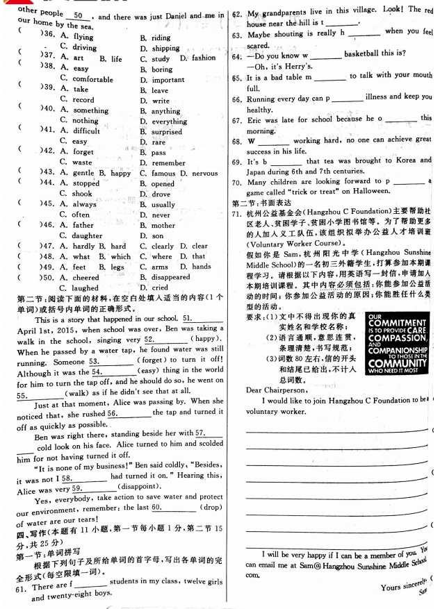 杭州拱墅区2015-2016学年初三上期末英语试卷(4)