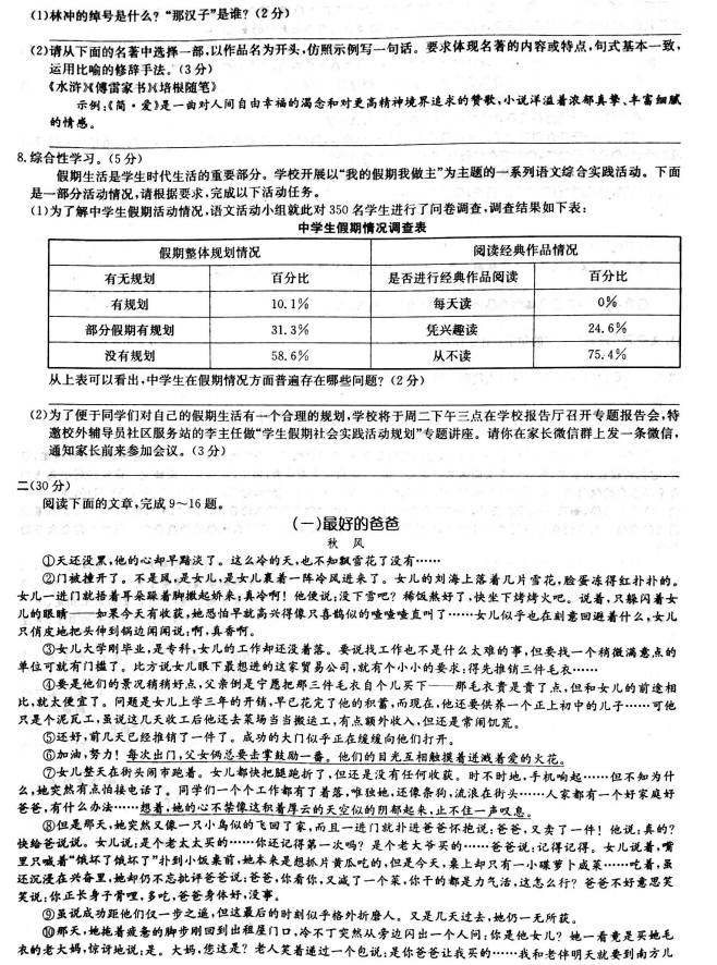 杭州余杭区2015-2016学年初三上期末语文试题(2)