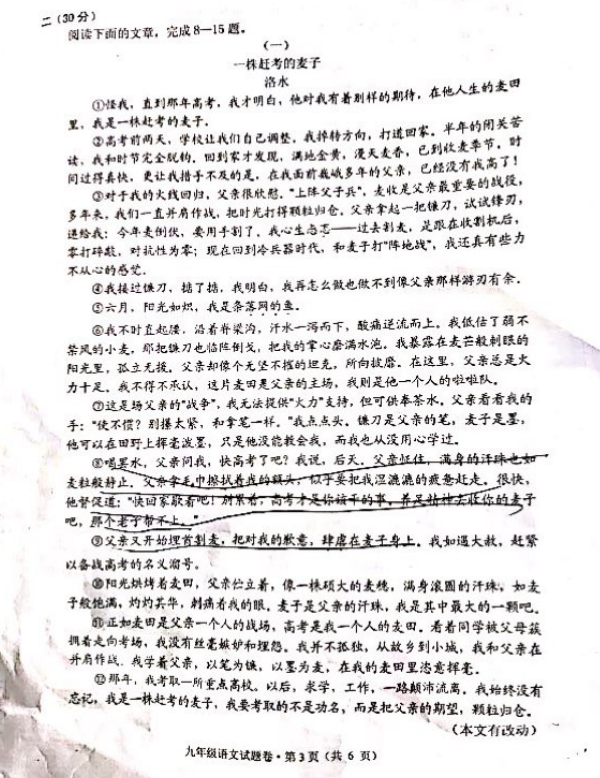 杭州西湖区2016-2017学年初三上期末语文试卷(3)