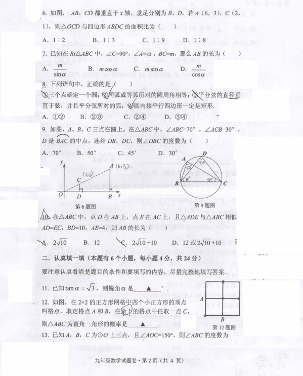 杭州西湖区2016-2017学年初三上期末数学试卷(2)