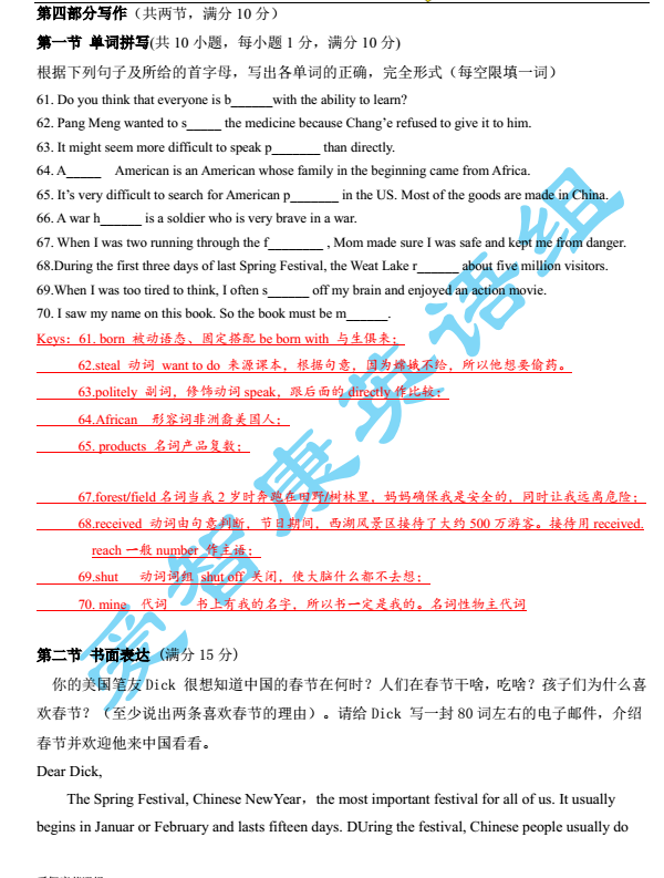 杭州上城区2016-2017学年初三上期末英语答案(8)