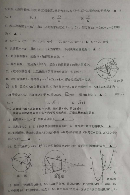 杭州朝晖中学2017-2018学年九年级上期中数学试题(2)