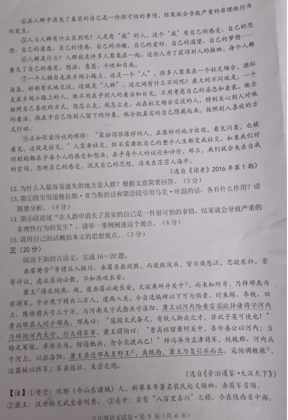 杭州经济开发区2016-2017学年九年级上期末语文试题(5)