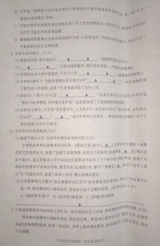 杭州萧山区2016-2017学年九年级上期末语文试题(2)