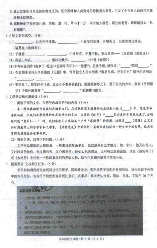 杭州拱墅区2016-2017学年九年级上期末语文试题(2)