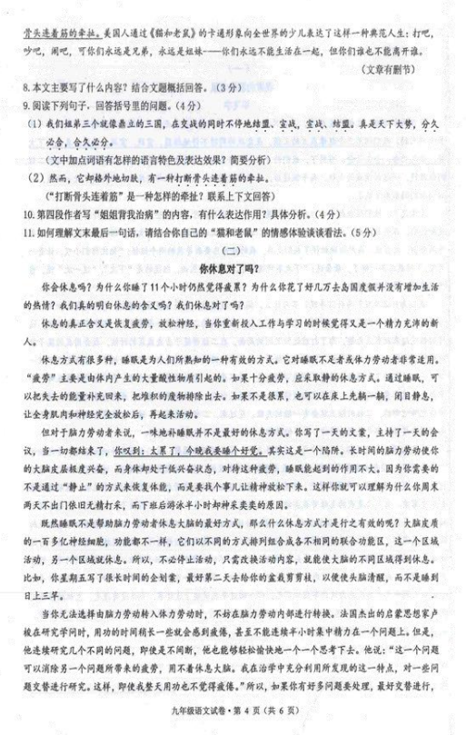 杭州拱墅区2016-2017学年九年级上期末语文试题(4)
