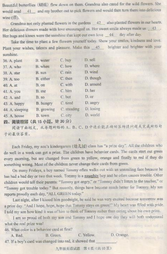 杭州萧山区良才学校2016-2017学年九年级上期末英语试题(4)