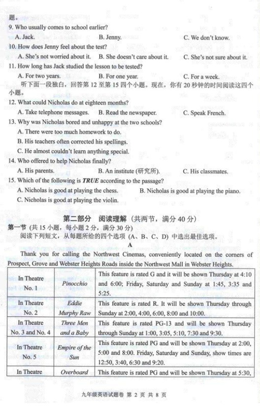 杭州拱墅区2016-2017学年九年级上期末英语试题(2)