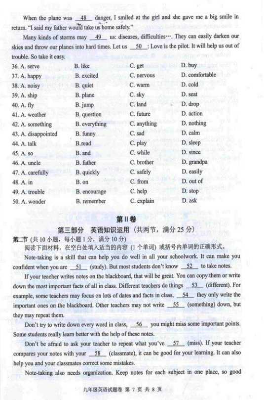 杭州拱墅区2016-2017学年九年级上期末英语试题(7)