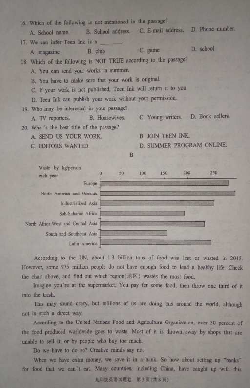 杭州萧山区2016-2017学年九年级上期末英语试题(3)