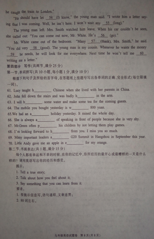 杭州萧山区2016-2017学年九年级上期末英语试题(8)