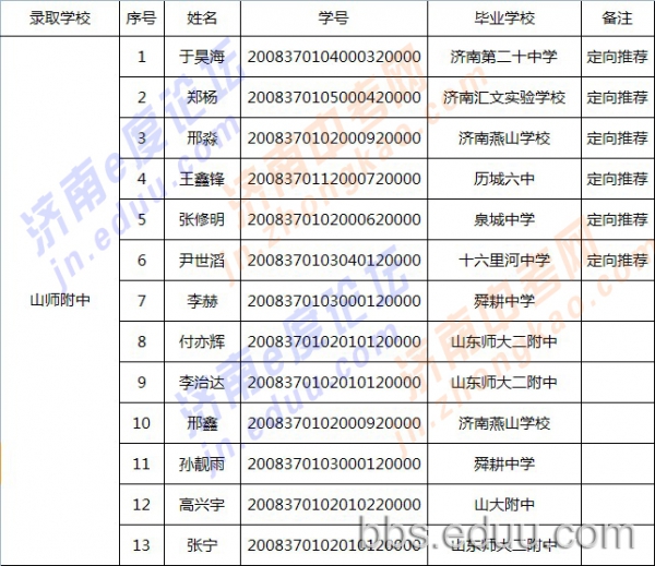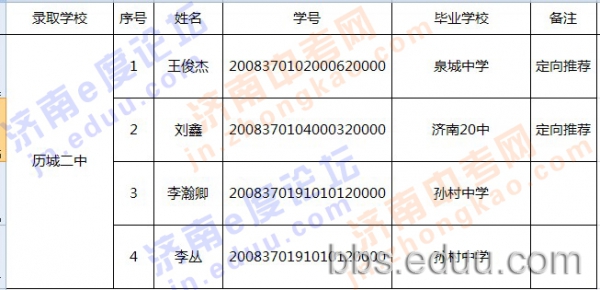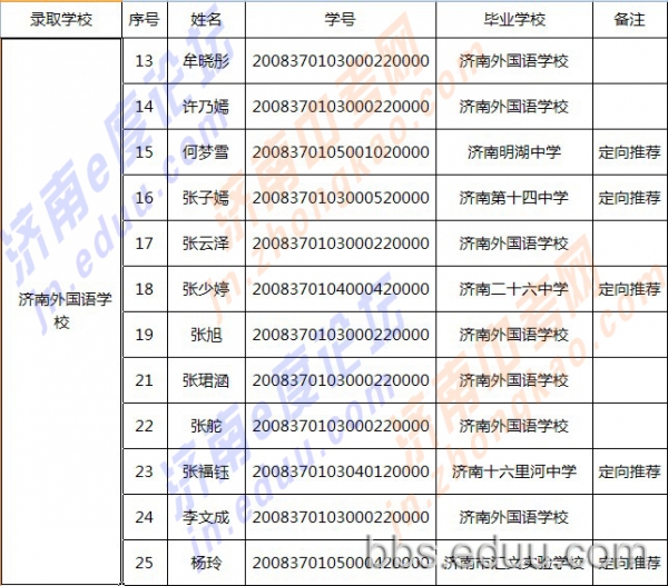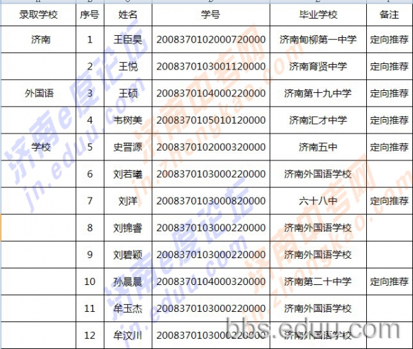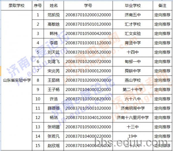 现将山东省实验中学、山师大附中、济南一中、济钢高中、济南外国语学校、历城第二中学通过的推荐生名单公示如下。