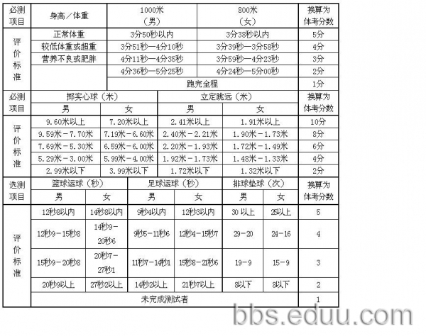 注:评分标准执行《国家学生体质健康标准评分表(中学组)》的标准。身高精确到毫米,体重精确到0.1公斤,1000和800米精确到秒,掷实心球和立定跳远精确到厘米,篮球、足球运球精确到0.1秒,排球垫球精确到整数。