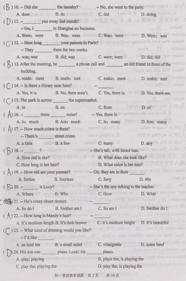 济南外国语学校2012-2013第二学期初一英语期末试题(2)