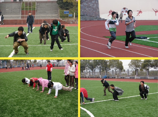 4、进行热身和体育项目现场示范和练习指导,进行分组练习