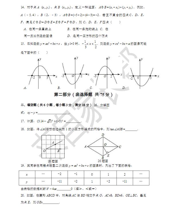 2016年3月历下区初三一模数学试题(3)