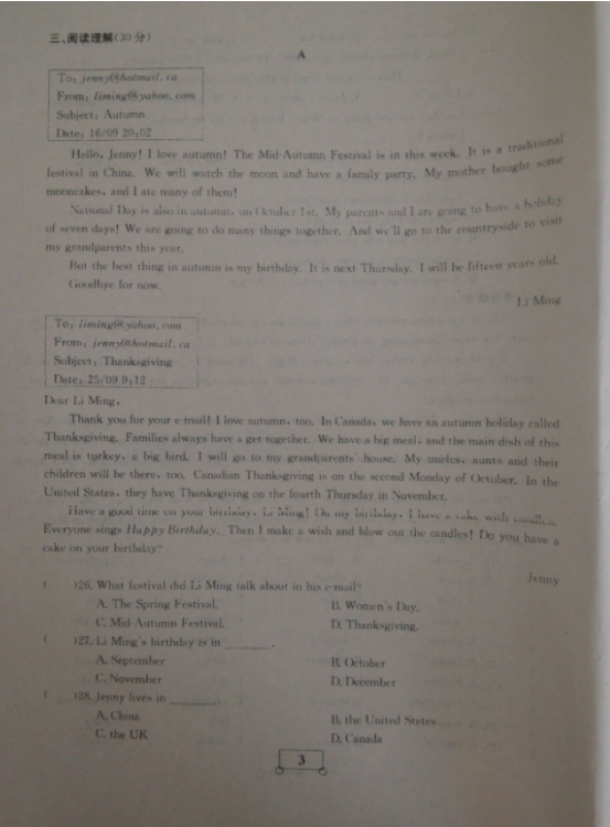 万德中学2017届九年级上学期开学考试英语试卷(3)