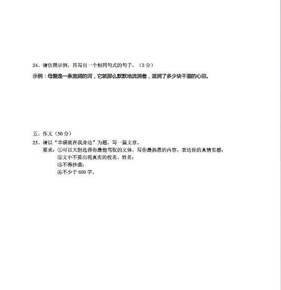 辛锐中学2015-2016学年初一上期中语文试题(8)