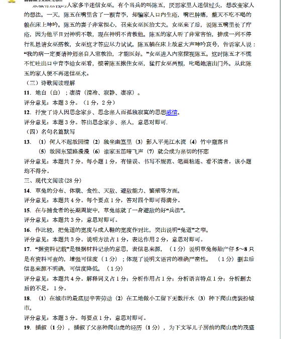 历城区2014-2015初一第二学期期中语文答案(2)