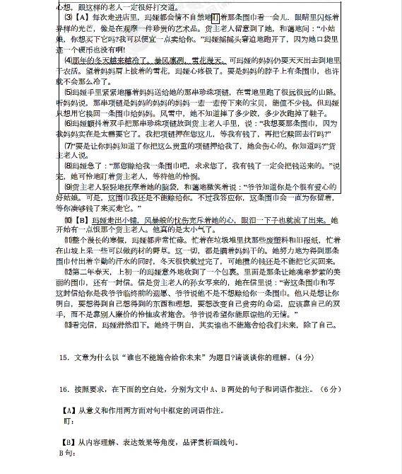 党家中学2015-2016学年初三上期中语文试题(4)