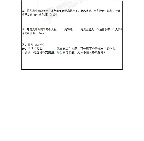 党家中学2015-2016学年初三上期中语文试题(5)