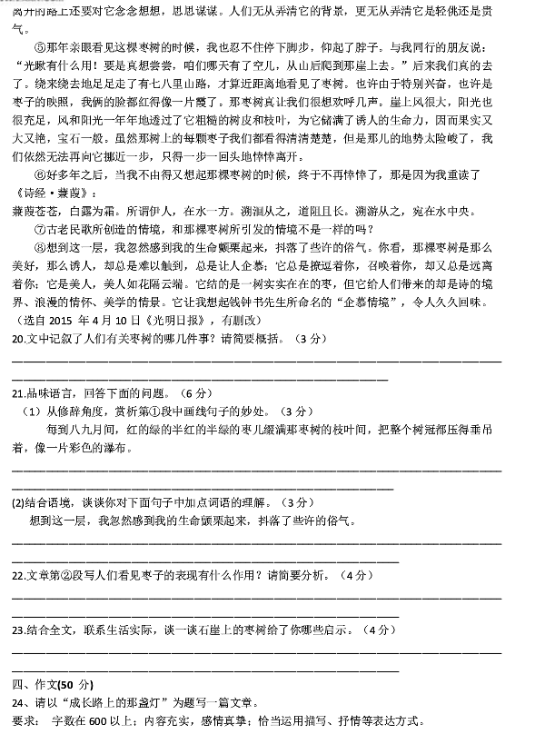 孙集中学2016-2017学年初三上期中语文试卷(5)