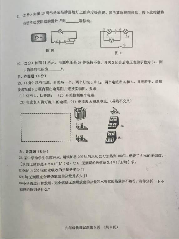 历城三中2016-2017学年初三上学期中物理试题(6)