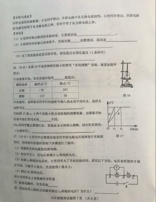 历城三中2016-2017学年初三上学期中物理试题(8)