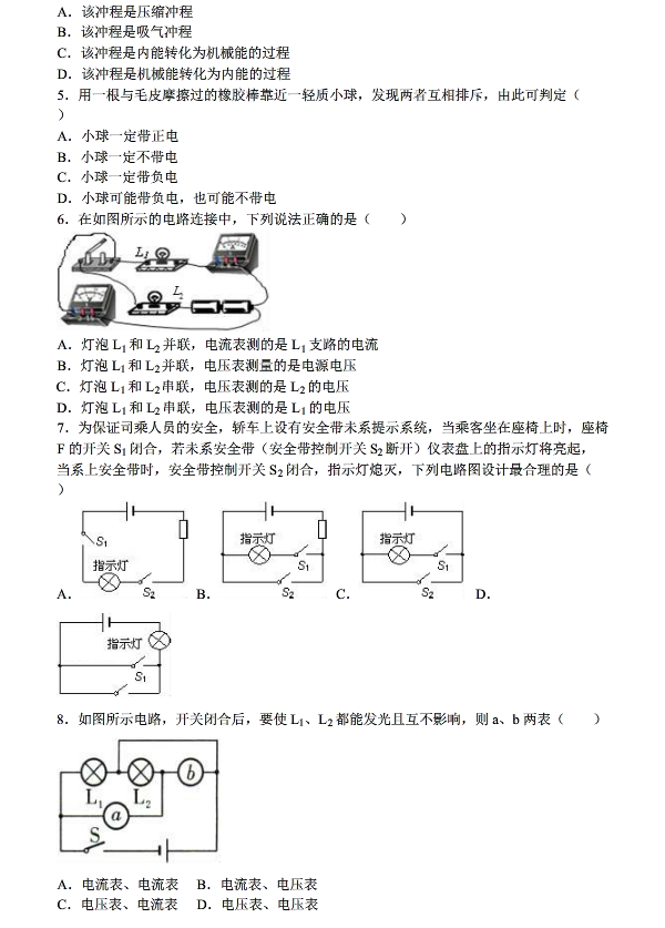 济南市市中区2015-2016学年初三上期末物理试卷(2)
