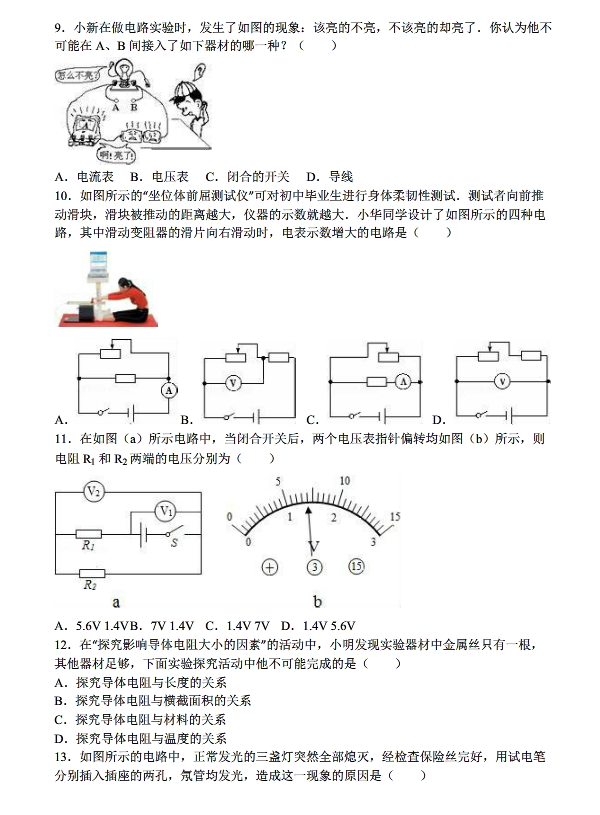 济南市市中区2015-2016学年初三上期末物理试卷(3)