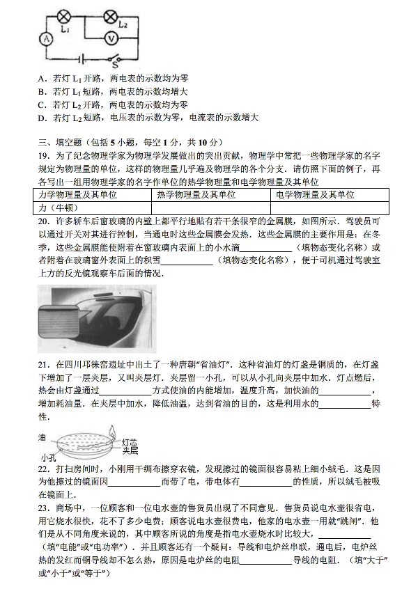济南市市中区2015-2016学年初三上期末物理试卷(5)