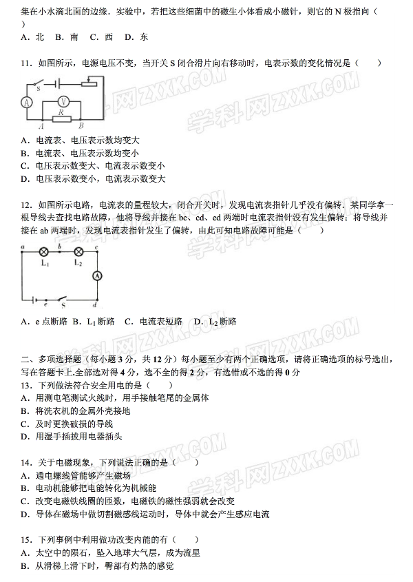 济南章丘实中2015-2016学年初三上期末物理试卷(3)