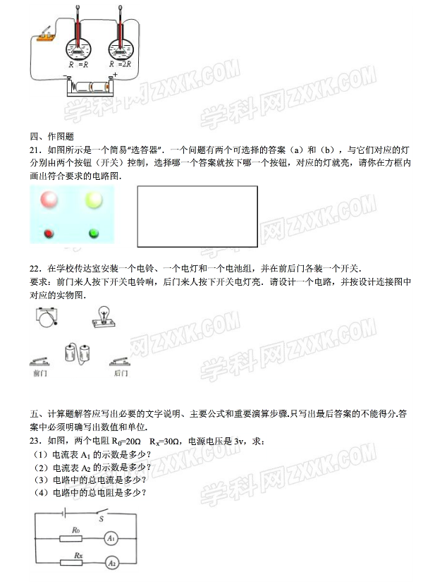 济南章丘实中2015-2016学年初三上期末物理试卷(5)