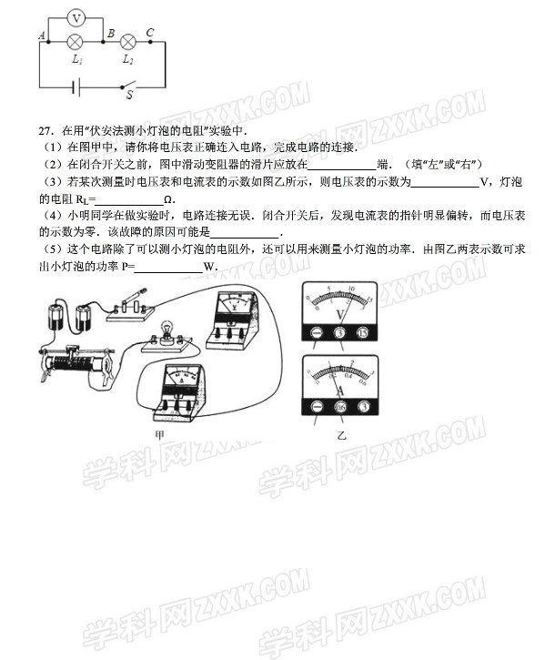 济南章丘实中2015-2016学年初三上期末物理试卷(7)