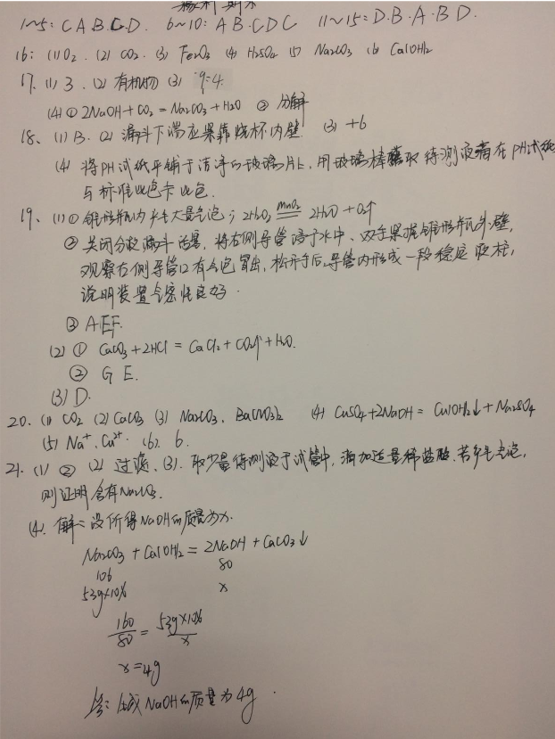 济南历城区2016-2017学年初三上期末化学答案