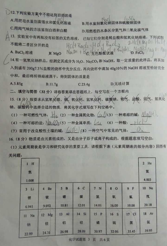 济南天桥区2016-2017学年初三上期末化学试卷(3)