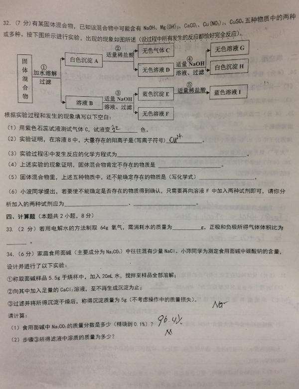 济南育英中学2016-2017学年初三上期末化学试卷(7)