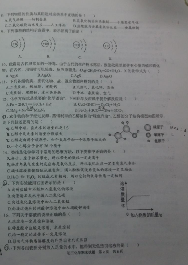 济南外国语2016-2017学年初三上期末化学试卷(2)