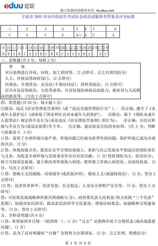 宁波中考网讯 每一年的中考试题都有其各自的特点,每一年的题型都有共同点,也有不同之处,小编将逐步整理历年的中考试题,供大家参考!愿能在中考之路上助你一倍之力!