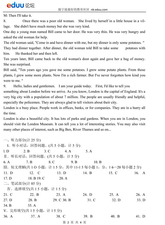 2005年浙江省宁波市英语中考试题答案(2)