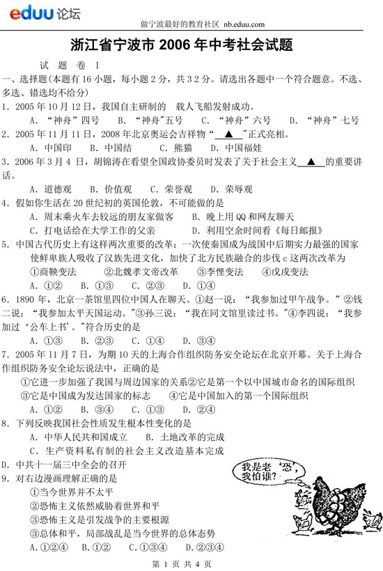 2006年浙江省宁波市中考社会政治试题