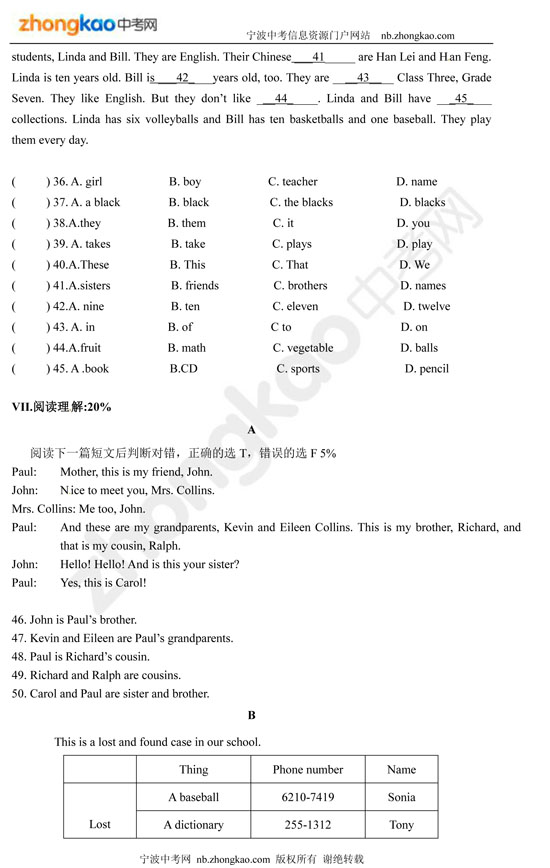 宁波顾国和中学2011学年第一学期初一英语期中试题(3)